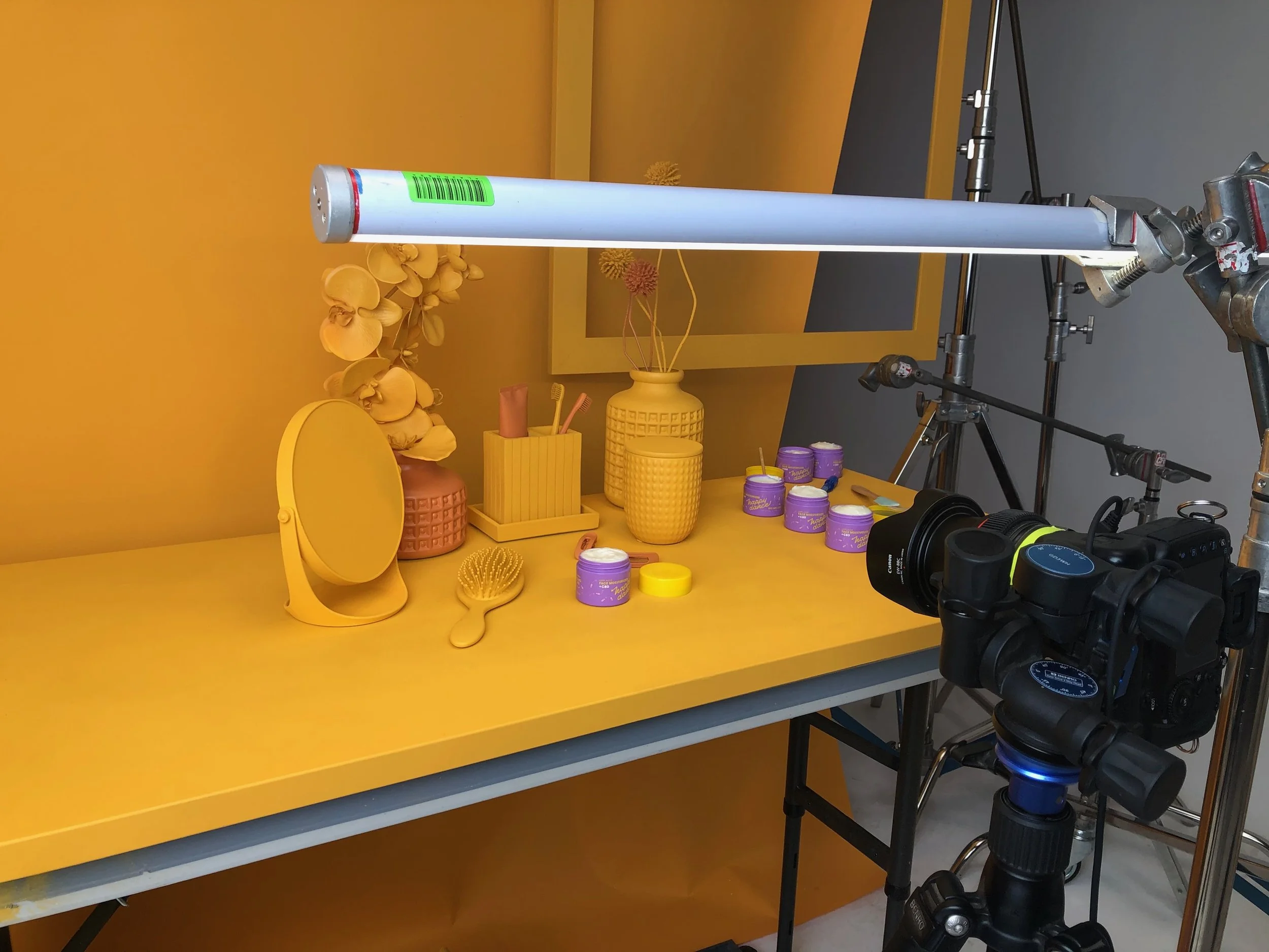 In searching for the perfect match to the brand’s colour palette, I found an unexpected solution: road striping paint. Thick, ultra-matte, highly durable and, crucially, the exact rich yolky yellow we needed. Without the time to custom mix and scenic-finish multiple props, this became the most efficient and effective approach.