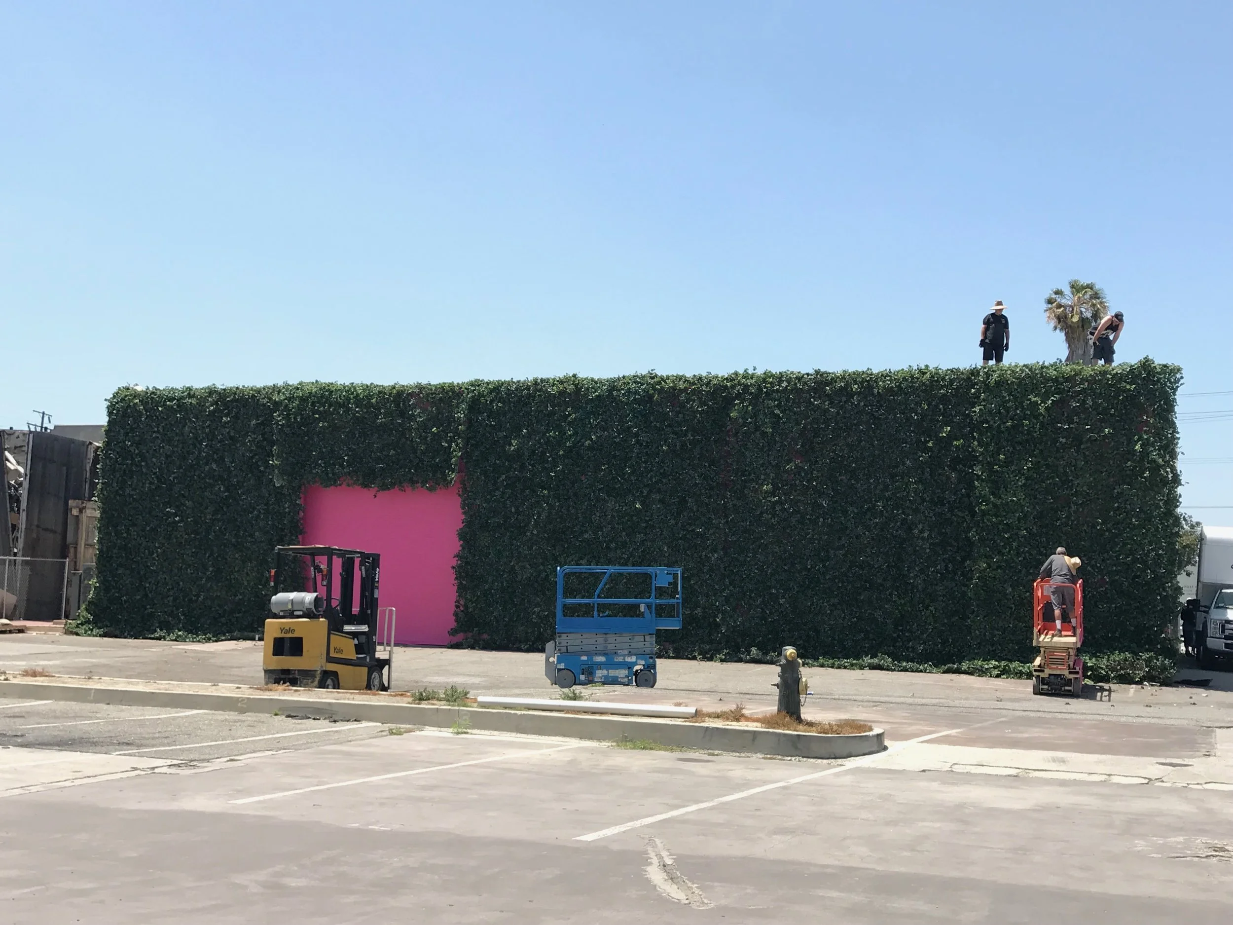 100’ of artificial ivy over a brand pink warehouse wall.
